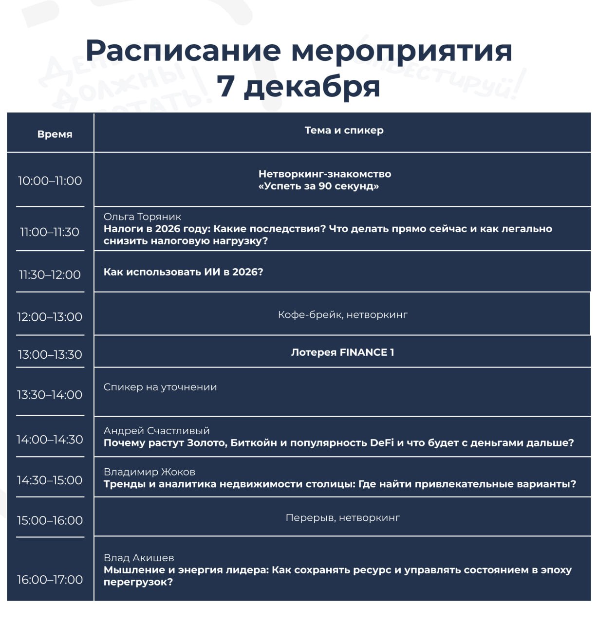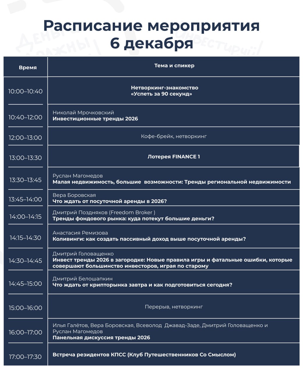 Визионер живых мероприятиях клуба Finance1 - организация и проведение Инвест конференций, семинаров и мастер майндов в РФ и за её пределами